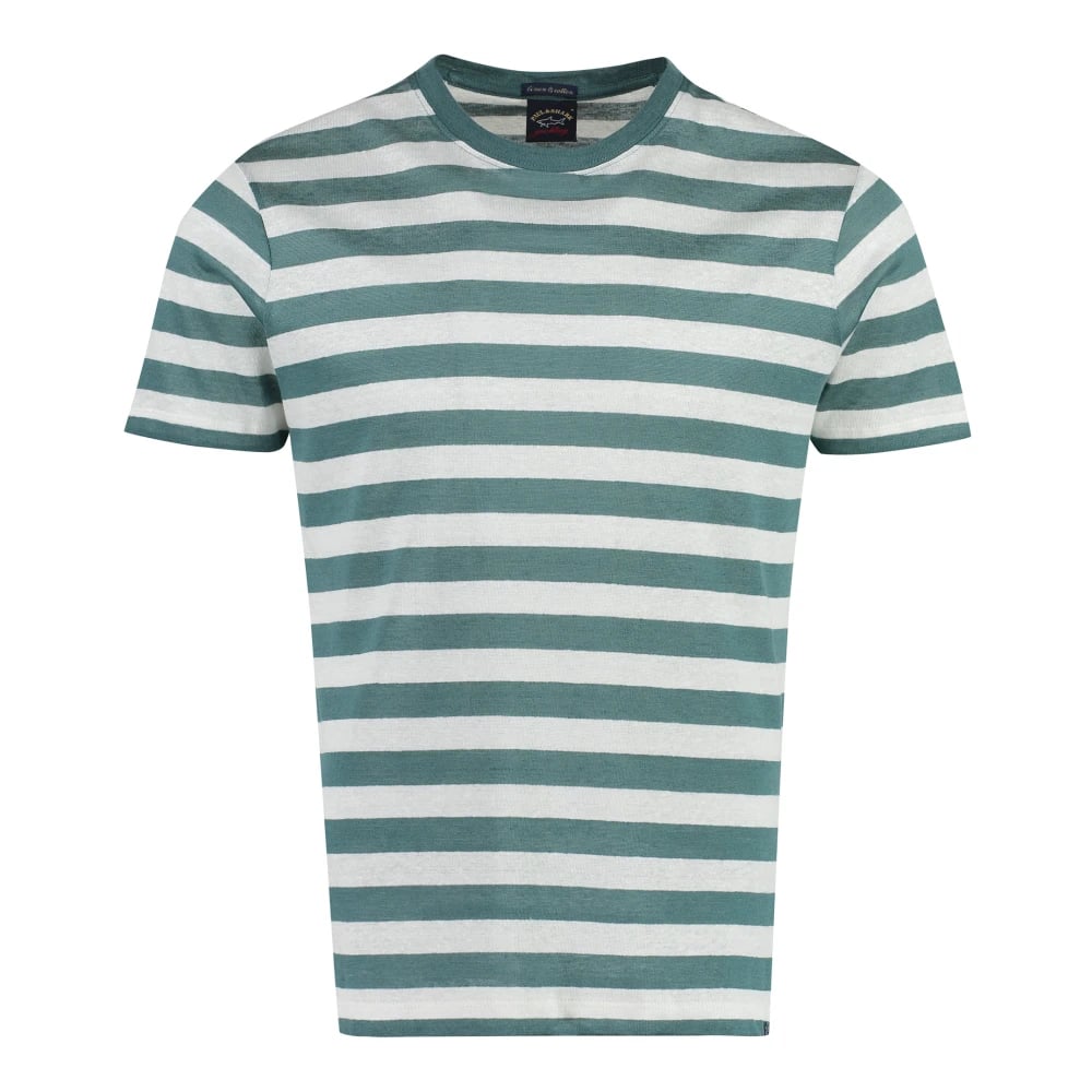 Paul & Shark, Toppar , Herr, S, Bomull, Randig T-shirt i linne- och bomullsblandning