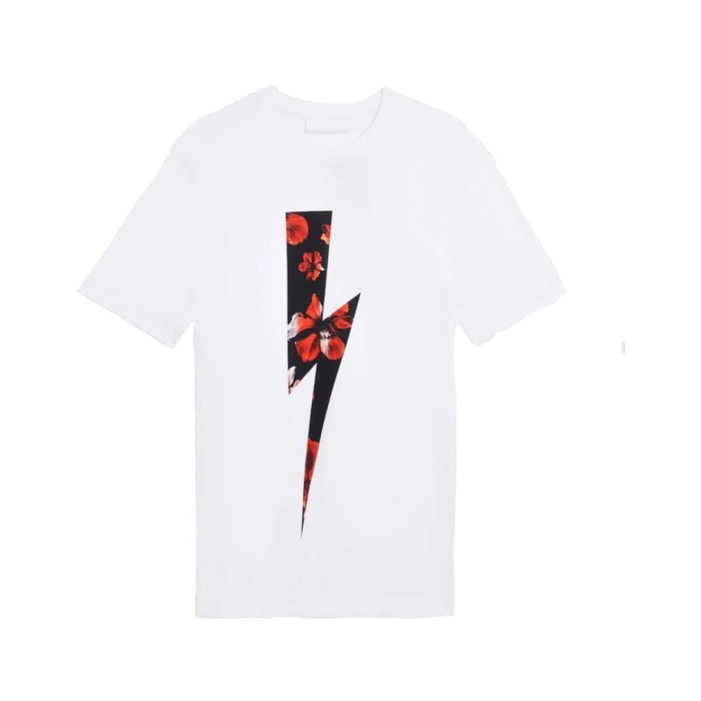Neil Barrett, Toppar , Herr, XL, Bomull, Tryckt Logotyp Vit T-shirt Slim Fit