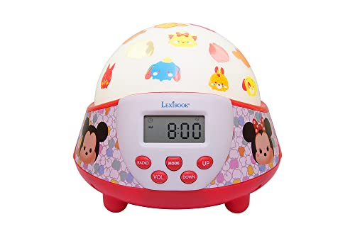 Lexibook Disney Tsum Tsum Musse Clock med nattljusprojektor kupol, energieffektiv, batteri, röd/vit, NLJ140TT