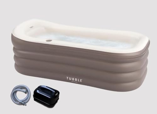 Tubble® Uppblåsbart bubbelbadkar, bubbelbadfunktion, hopfällbart för vuxna, justerbart vattenflöde, brungrå, humör, 255 l