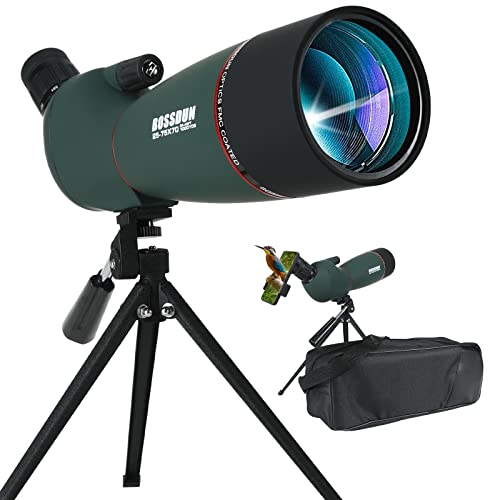 25–75 x 70 HD tubkikare med stativ och smartphone-adapter, Zoom Bak4 Prism FMC Lens, 45 graders vinklad teleskop för fågelskådning, vilda djur, stjärnskådning (GREENB)