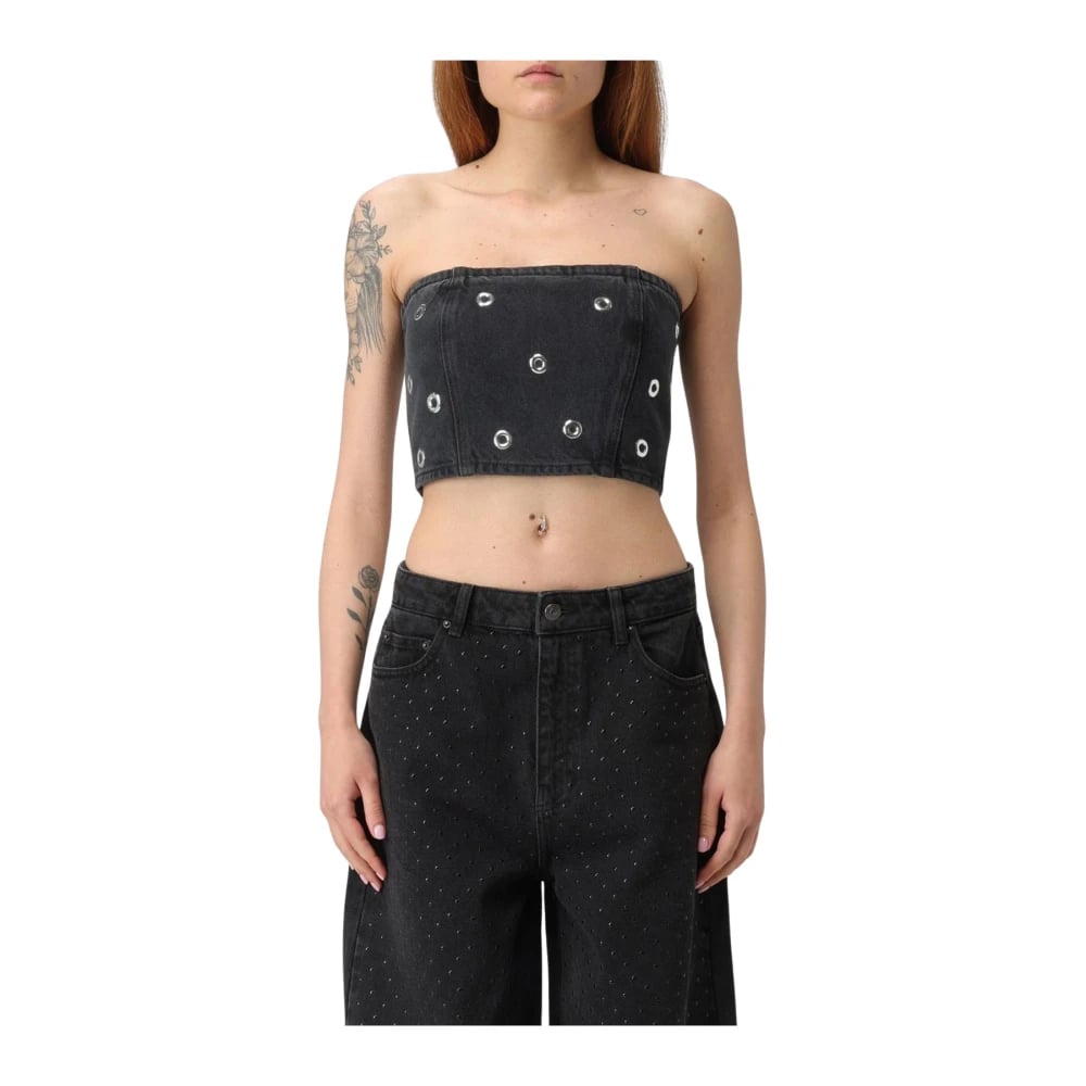 Rotate Birger Christensen, Toppar , Dam, XS, Denim, Denim Tubtopp Silver Öljett