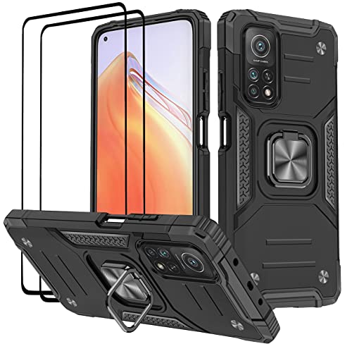 KANSi fodral till Xiaomi Mi 10T PRO/Mi 10T, härdat glas [2-pack] skyddande silikon TPU stötsäker tuff rustning hårt skydd – svart
