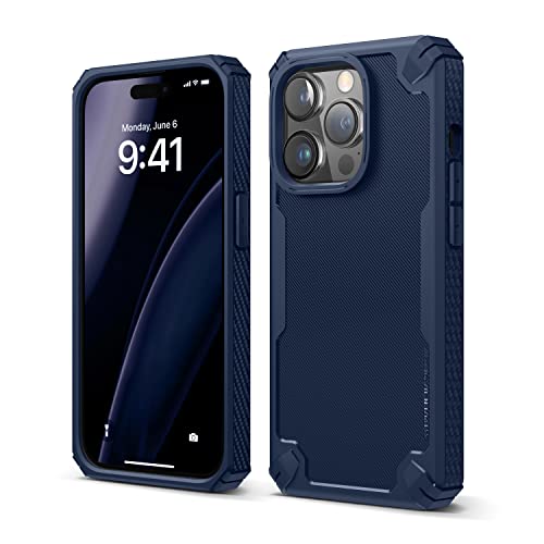 elago Armor fodral till iPhone 14 Pro (6,1 tum), droppskydd i militärkvalitet, kraftig, kolfiberstruktur, tuff robust design, stötsäker, Jean Indigo