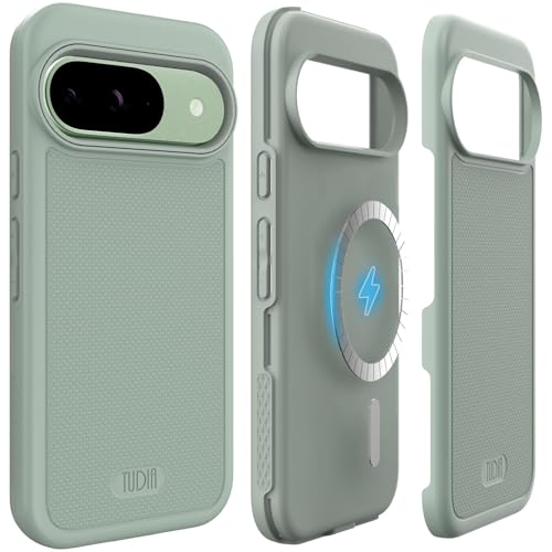 TUDIA MergeGrip designat för Google Pixel 9/Pixel 9 Pro fodral (2024), [Magsafe kompatibel] militärkvalitet dubbla lager stötsäker smal tuff slitstark skyddande telefonfodral skydd (grön lilja)