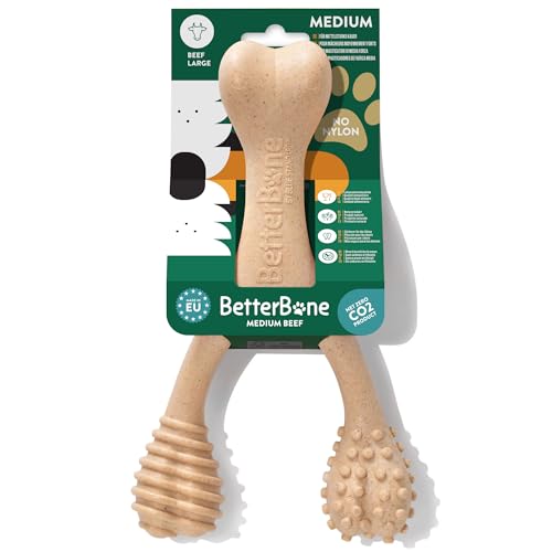 BetterBone - Tuggleksak för hund - Large Medium Beef - Tuggben för hund Nylon- och GMO-fritt baserat på cellulosa - Tuggleksak mediumhård med smak av nötkött - Tuggträ splitterfritt och hållbart