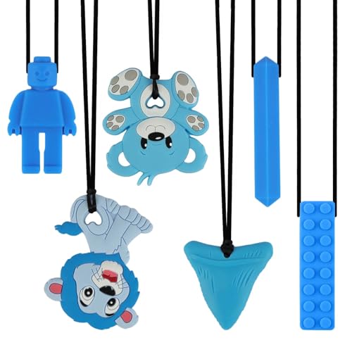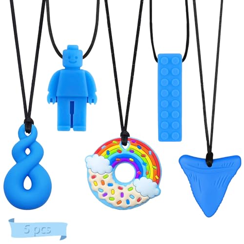 5 st blå sensoriskt tugghalsband, silikon tillverkad för barn tandsprickning och oral motor tuggig