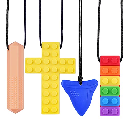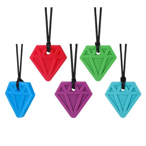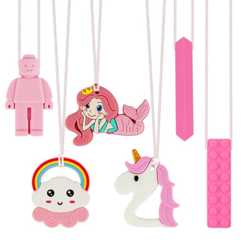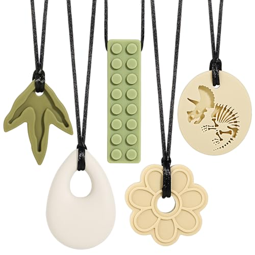 Tixiyu tugghalsband, 5-pack sensoriskt tugghalsband set tillverkat av livsmedelssäkert silikonsäkerhet för barn tandsprickning, silikon tuggpinnar för autism, ADHD, munmotorer pojkar och flickor barn