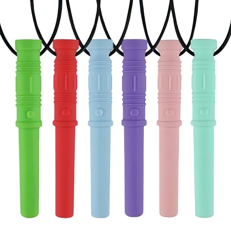 RUIOMII 6-pack silikon sensoriskt tugghalsband tuggben för autistisk ADHD oral motor barn vuxen