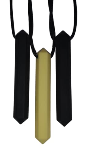 Chewelry Sensoriskt tugghalsband, tuggsmycken för barn eller vuxna med autism, ADHD som behöver stymma tugga bit eller fidget tugghjälpmedel, hjälper koncentration, bitande bunt, 3-pack (svart gul svart)