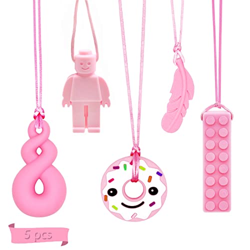 5 st sensoriskt tugghalsband, rosa bitringar tuggleksaker för autistiska barn, ångest, bitande behov silikon tuggleksak tillverkad av matkvalitetssilikon för barn tandsprickning oral motor tuggig