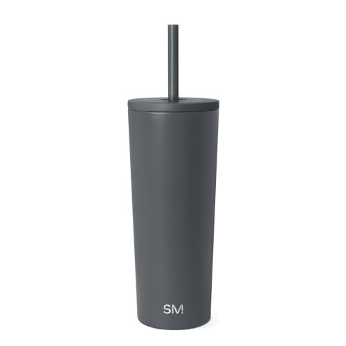 Simple Modern Isolerad Tumbler med Lock och Sugrör | Iskaffemugg Återanvändbar Rostfritt Stål Vattenflaska Resemugg | Gåvor för Kvinnor Män Henne Honom | Klassisk Kollektion | 710 ml | Grafit