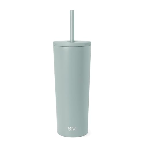 Simple Modern Isolerad Tumbler med lock och sugrör | Iskaffekopp Återanvändbar Rostfritt stål Vattenflaska Resemugg | Vårbrytningsgåvor för henne och honom | Klassisk kollektion | 8 oz | Havsglas salvia