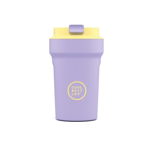 Cool Bottles – Paradise Tumbler – Isolerad tumbler i rostfritt stål – 350 ml – Bali – malva och gul – läckagesäkert lock – håller drycker kalla i 10 timmar och varma i 5 timmar – fläckavvisande yta
