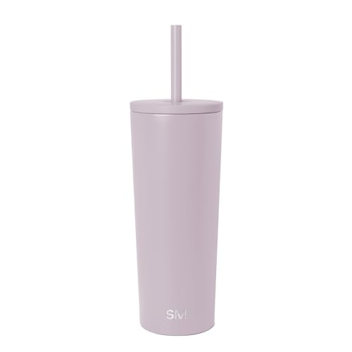 Simple Modern Classic Isolerad Tumbler med Sugrör och Flip-lock - Rostfritt stål Vattenflaska Iskaffe Resemugg Mugg, 710 ml (24 oz), Lavendel dimma