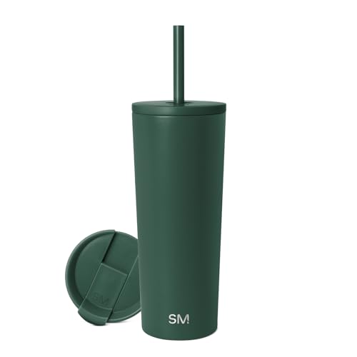 Simple Modern Isolerad Tumbler med Sugrör och Lock | Iskaffekopp Återanvändbar Rostfritt Stål Vattenflaska Resemugg | Gåvor för Kvinnor och Män | Klassisk kollektion | 710 ml | Skog