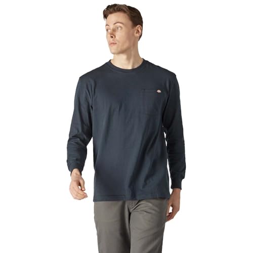 Dickies mäns tungvikt LS ficka t-shirt avslappnad, Mörk marinblå, XXL