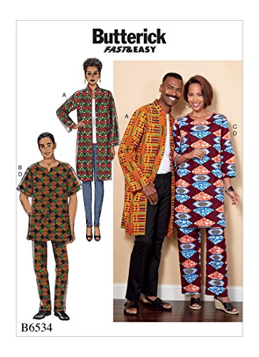 Butterick Mönster 6534 XM, Misses/Men's Coat, tunika och byxor, storlekar S-L, näsduk, flerfärgad, 17 x 0,5 x 22 cm