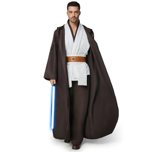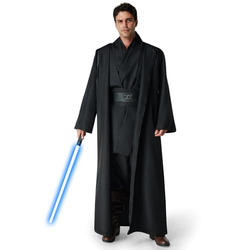 IEEILULU Jedikostym herr, jedirock herr set Jedis outfit herr jedis kläder herr med blå lightsaber, kappa med huva och medeltida tunika för halloween, karneval (svart, M)