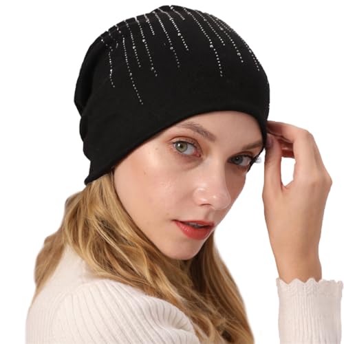 Mode glitter unisex mössa: tunn säckig sovmössa för håravfall kemohatt svart, Svart, en storlek