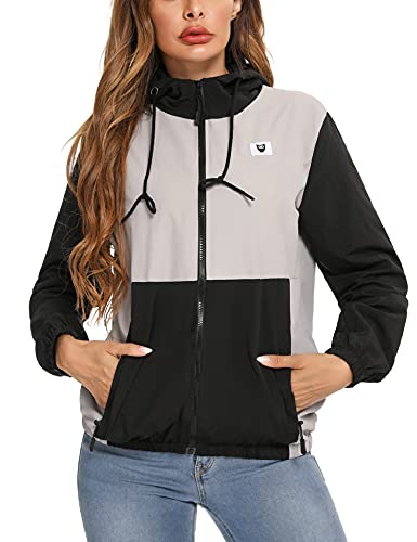 Doaraha Regnrock för kvinnor, vattentät regnjacka, färgblock, allvädersjacka, tunn vårkappa, lång parkas, softshelljacka, övergångskappa med huva för sport utomhus