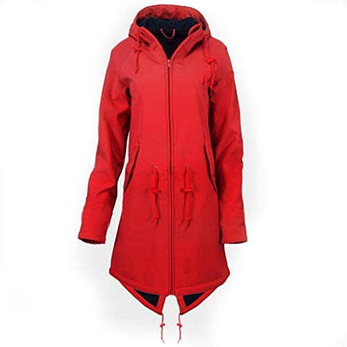 Regnjacka dam stora storlekar lång, funktionell jacka dam tunn lätt sommarrock i väska vandringsjacka vattentät andningsaktiv sweatjack/trenchcoat/tunn jack/regnjackor/softshelljacka, röd, L