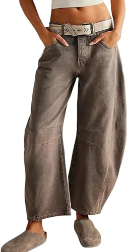 AALLYN Damjeans - medelstor - byxor med breda ben - pojkvänsjeans till dam - retro - denim - baggy - vintage - hästsko - tunna jeans - jeans 7/8 p, kaffe, XXL