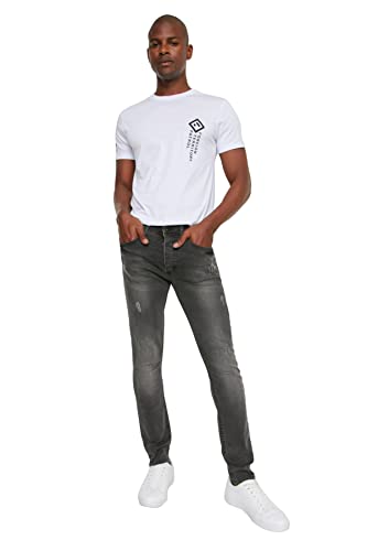 Trendyol Mäns manliga krattan frustrerade tunna jeans, grå, 40