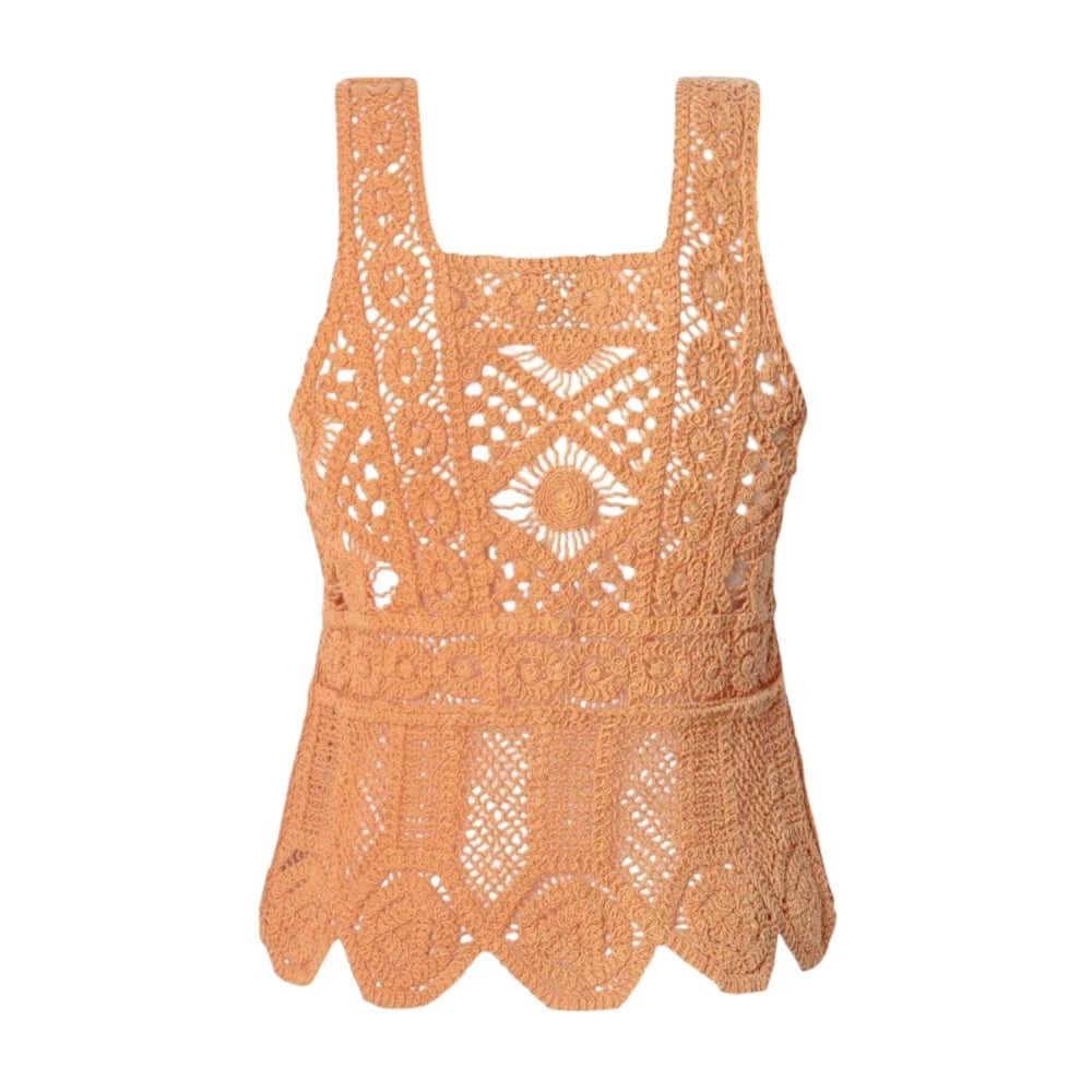 Pepe Jeans, Toppar , Dam, M, Tvättad Orange Topp med Tunna Band