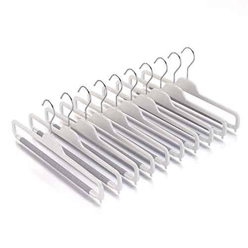 Mainetti Hängare för byxor, Jeans, Män kvinna, Plastic Groups, Tunna, Space Sparande, Med Dragbar Skum Byxor, 10 st, Polerad vit med galvaniserad krok, 38 cm