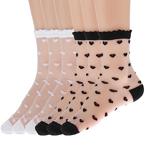 Lusofie 6 par ankel volanger genomskinliga strumpor tunna genomskinliga nät spetsstrumpor Summeer skira strumpor kvinnor mode (svart, vit), Svart vit, one size