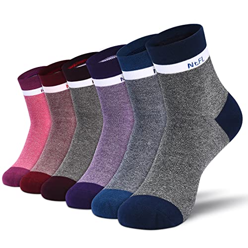 NinetoFiveLife Förpackning med 6 damstrumpor i bomull atletiska strumpor vandringsstrumpor för kvinnor sommar tunna strumpor mjuka och bekväma, rosenröd, vinröd, karmosinröd, lila, blå, mörkblå, 6