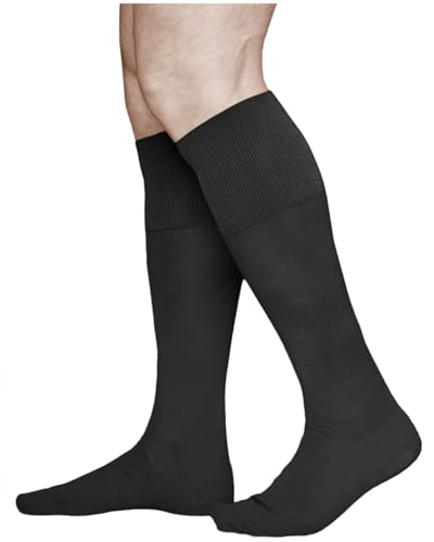 VITSOCKS Tunna Knästrumpor Herr, 100% BOMULL Premium (2 PAR) Ribbade Eleganta Höga Strumpor, svart, 42-43