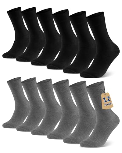 Libella Tunna strumpor, sommarstrumpor, klassiska klädstrumpor för män och kvinnor, bomull, ventilerande, bekväma och mjuka, vardags-basstrumpor, svarta eller flerfärgade (12 par), 43-46 EU