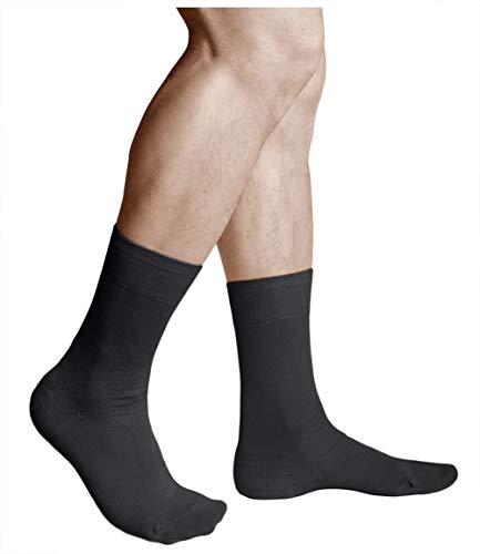 FALKE Herr Firenze strumpor Fil d´Écosse bomull svart grå många fler färger förstärkta herrstrumpor utan mönster andas tunna och enfärgade 1 par, Grå (antracit melange 3190), 45-46 EU