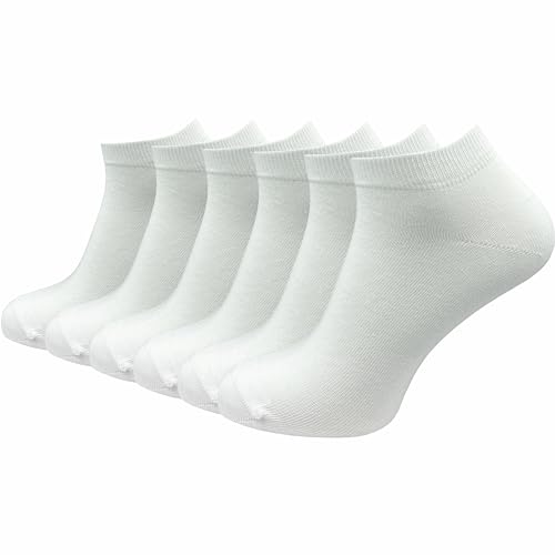 GAWILO Sneakers för män av 100 % ren bomull (6 par | 10 par) | Korta och tunna strumpor | utan pressande söm över tårna, vit | 6 par, 47-50 EU