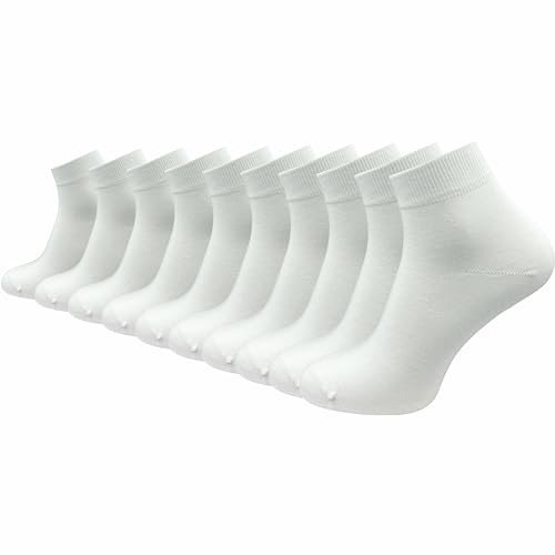 GAWILO Kvartsstrumpor för män av 100 % ren bomull (6 par | 10 par) | Korta och tunna strumpor | utan tryckande söm över tårna, vit | 10 par, 39-42 EU