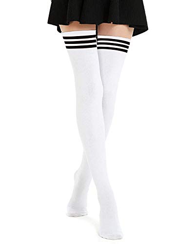 DRESHOW Extra Långa Lårhöga Strumpor för Kvinnor Tunna Randiga Tubtights över Knä Casual Strumpor med Hög Känga
