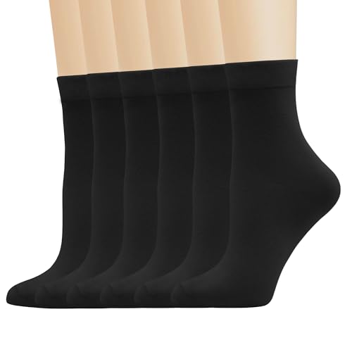 Tunna strumpor av bambufiber, silkeslena, mjuka, ventilerande, klassiska, luktfria, avslappnade strumpor, 6 par, svart, Large