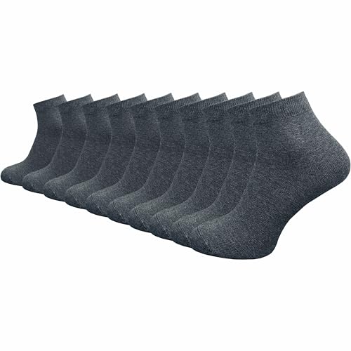 GAWILO Kvartsstrumpor för män av 100 % ren bomull (6 par | 10 par) | Korta och tunna strumpor | utan tryckande söm över tårna, grå | 10 par, 39-42 EU