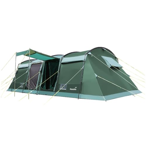 Skandika Montana Sleeper/Sleeper Protect Tält för 8/10/12/14, tunneltält för familjecamping, mörka sovhytter, 5 000 mm i vattenpelare (Protect Sleeper, 8 pers, grön)