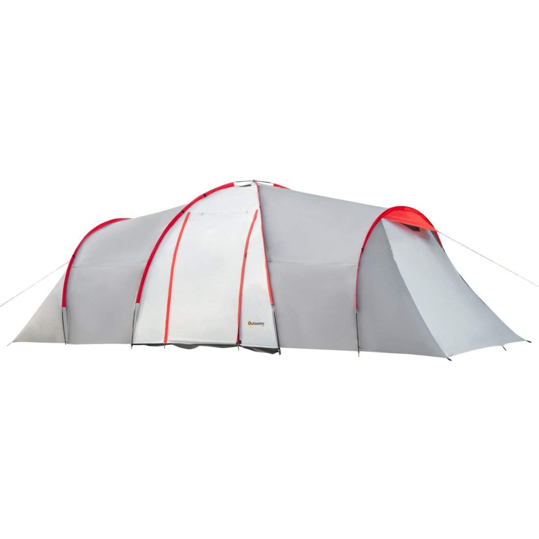 Tunneltält, campingtält för 4-6 personer, med 3 rum, ljuskrokar, dubbeldörrar, grå