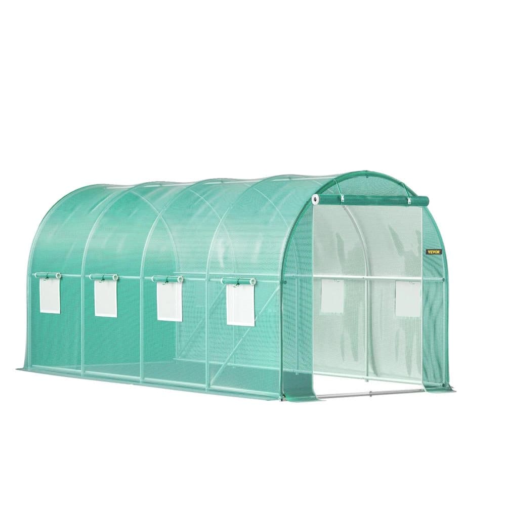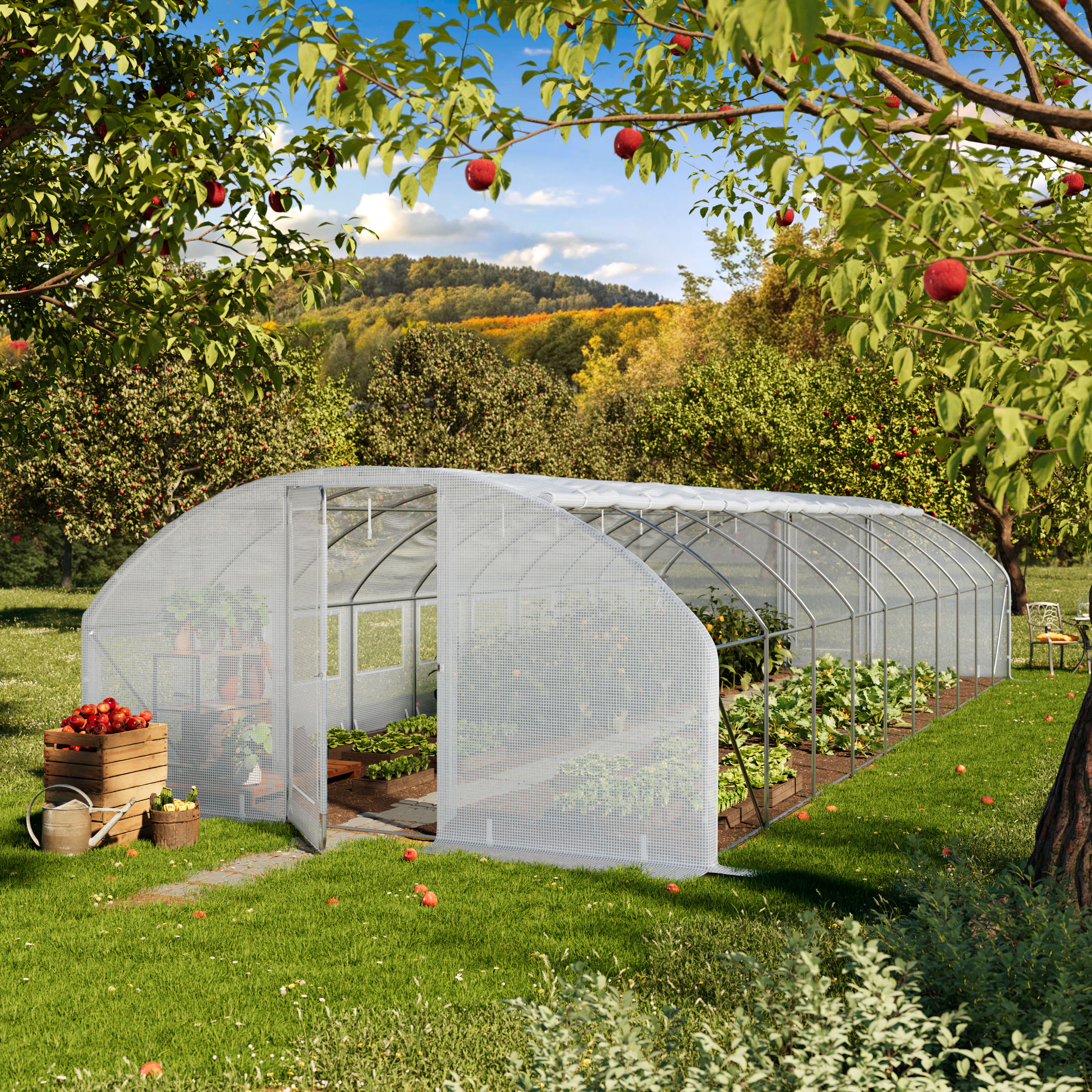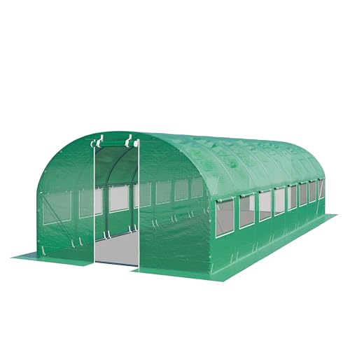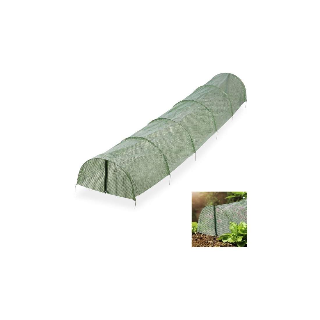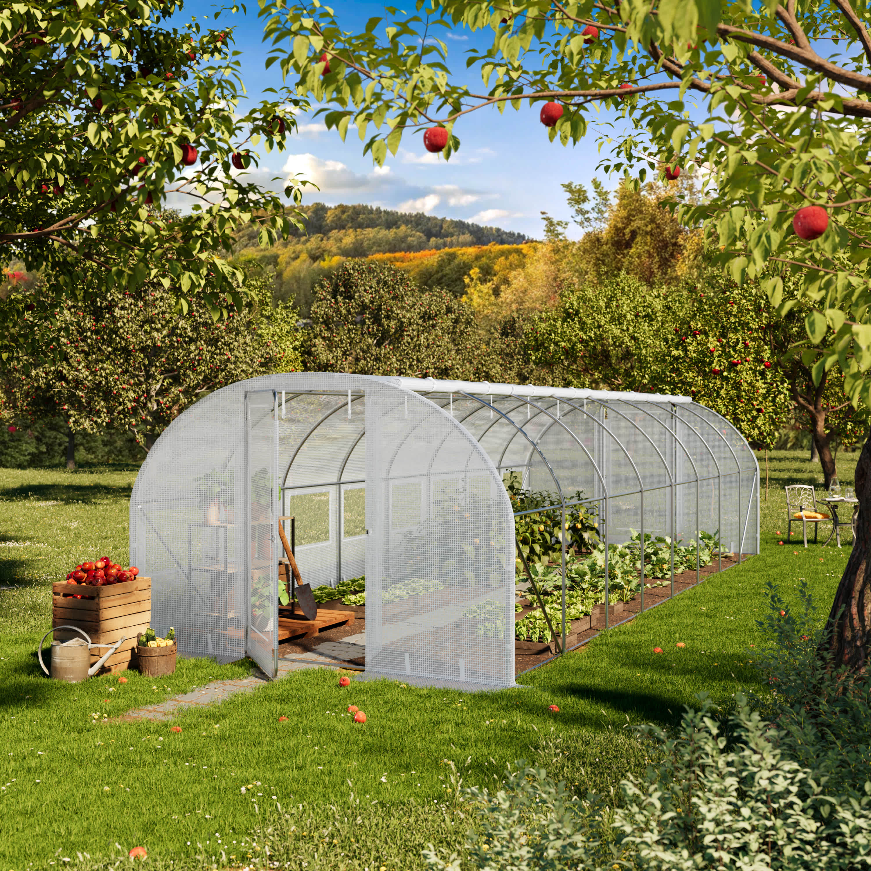 Utomhusväxthus - Tunnelväxthus - 397x300x200 cm - UV-skyddad PE - 6 nätfönster - 3 rullportar med dragkedja - Vattentätt - Grön