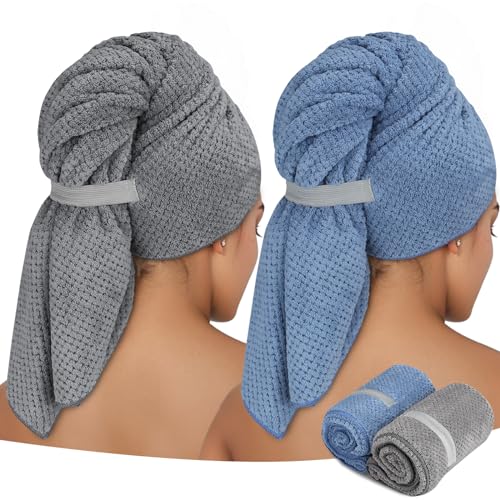 ytorgr 2-pack mikrofiber hår handduk wrap för långt hår, 100 x 60 cm stor hår turban handduk för kvinnor flickor, snabbtorkande superabsorberande hårtorkshandduk 100 x 60 cm