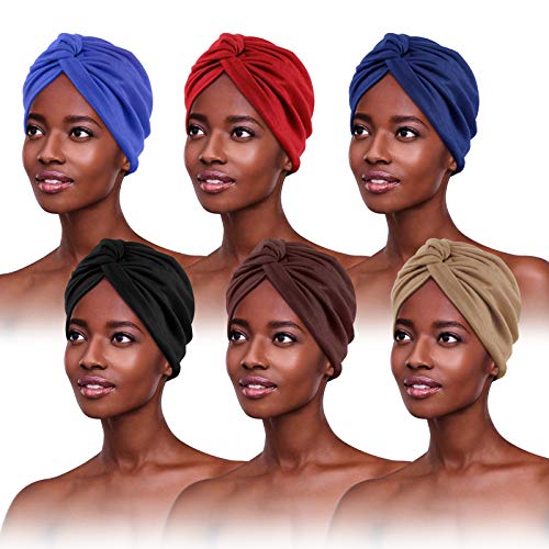 6 delar afrikanska kvinnor turban huvudscarf mössa för svarta kvinnor flätad huvudsjal, Svart, vit, sjöblå, rosa, kaki, marinblå, S-XXL