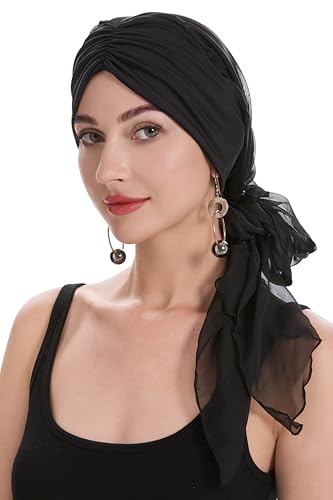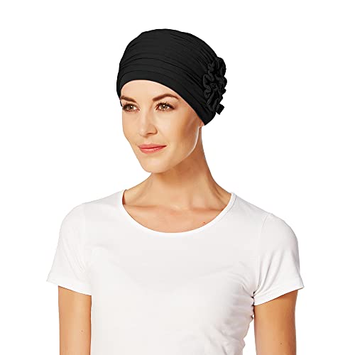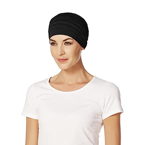 Christine Huvudbonader Shakti Turban | Chemo Huvudbonad | Huvudduk för Dam Med Håravfall | Kemohatt på 95% Viskos Bambu 5% Elastan, Svart, One Size