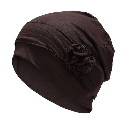 ZLYC Dam turban mössa hatt med blomma kemo huvudbonad elastisk huvudsjal keps, Plisserad blomma kaffe, en storlek