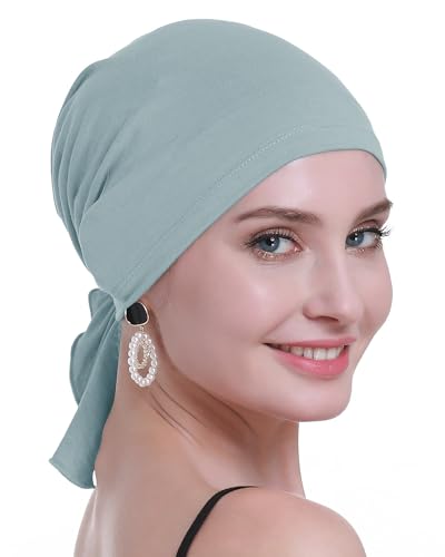 osvyo Bamboo Chemo huvudbonad för kvinnor hårförlust dam huvudduk förseglad turban, Ljusblå, grå, one size