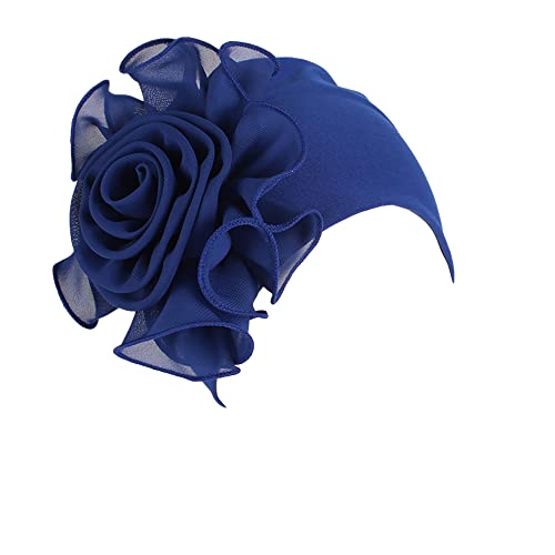 Stor blomma Prydnad Tyg Vintage Stil Elegant Turban Bröllopspaj för kvinnor Cancer Kemoterapi Natt Håravfall Turban Dam Bambu Fiber Huvudbonader (blå)