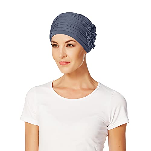 Christine huvudbonader lotus turban dam | Chemo huvudbonad dam | huvudduk för dam med håravfall | kemohatt dam på 95% viskos bambu 5% elastan, blå, En Storlek